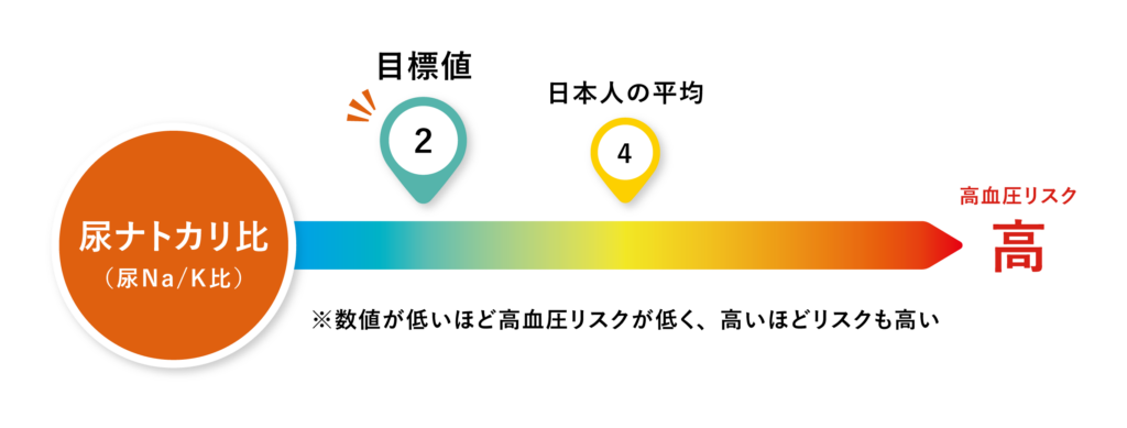 また、尿ナトリウムや尿カリウム単独の測定値よりも、尿ナトカリ比の方が血圧値との関連がより強いことも報告されています。