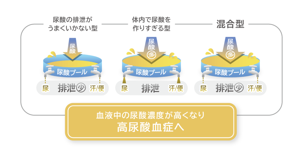 - 尿からの排泄が少ない「尿酸排泄低下型」